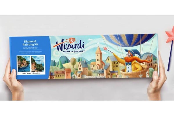 Diamond Painting. Het pakket bevat hoogwaardig bedrukte canvasdoek, voorgesorteerde acrylic vierkante steentjes (2,5x2,5mm), pen, pincet, een sorteerbakje, wax en duidelijke instructies.