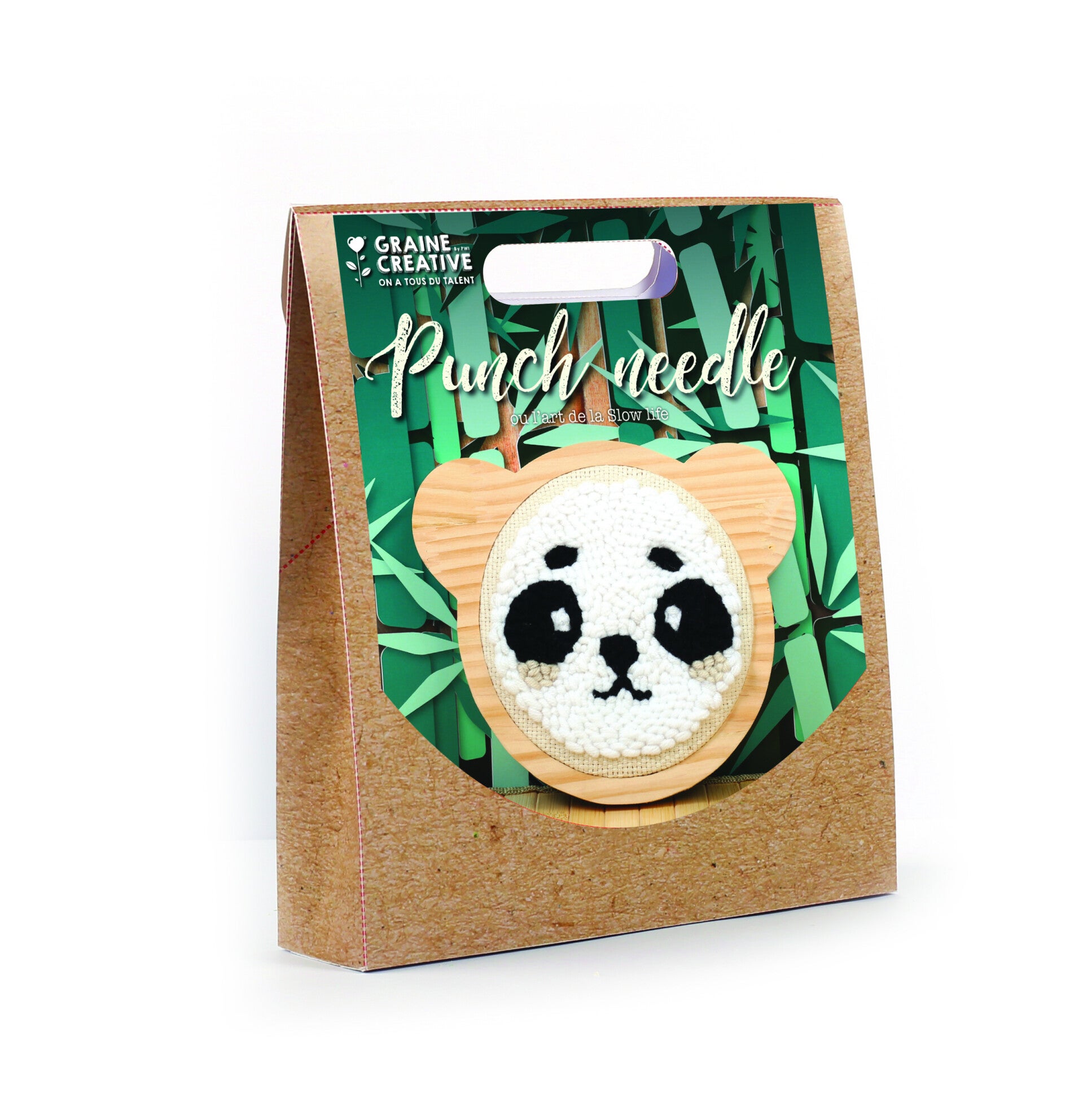 Een complete set met alles wat je nodig hebt om een Panda Punch Needle borduursel te maken, de nieuwe trend in creatief borduren!