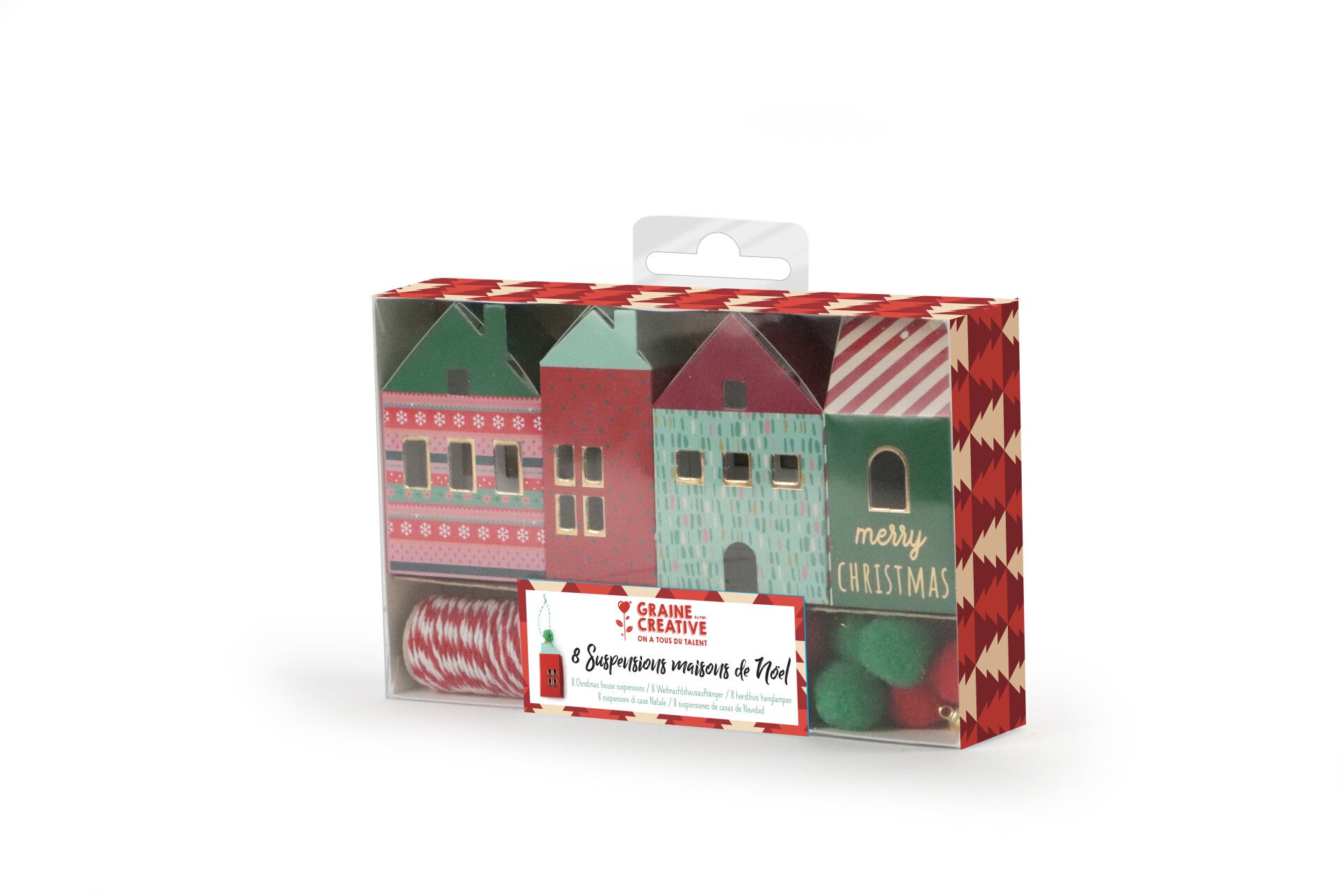 Breng aan het einde van het jaar enkele kerstdecoratie-elementen aan, zoals deze set huizen We willen vaak dat het het hele jaar door kerst is! Dus, om een beetje van deze sfeer te geven, nodigen we je uit om deze batch huizen te ontdekken! Waar zijn ze van gemaakt? Zoals je kunt zien op de foto's, wordt elk van hen afgewisseld met rode of groene kleuren. Deze keuze is niet triviaal, want het rood symboliseert vaak het kostuum van de kerstman en het groen herinnert aan de koning van het bos, de dennenboom! Gegarneerd met een pompon die eruitziet als de rook die uit de open haard ontsnapt, maar ook een touwtje, kunnen ze vrijwel overal worden opgehangen. Een raamdecoratie, een kerstboom zonder slingers, je briefpapieraccessoires zoals de anderen of andere sleutelhangers.