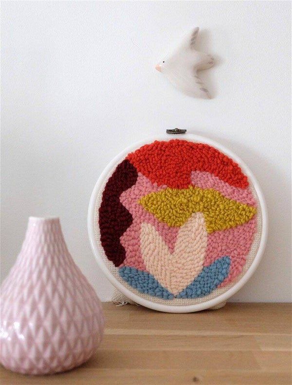 Dit DIY-pakket is ideaal als je opzoek bent naar een compleet pakket om te beginnen met punch needle. Punch needle is een vorm van borduren waarbij je gebruik maakt van een holle naald waar een draad doorheen loopt. Aan de ene kant van de stof maak je lussen en aan de andere kant ontstaan platte steken. Het voordeel van punchen is dat je in tegenstelling tot borduren niet hoeft te tellen.