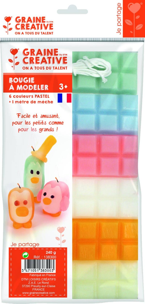 Kinderen zullen het erg leuk vinden om hun eigen kaarsen te maken. Kaarsenwas in verschillende kleuren die je dankzij de warmte van je handen vorm kunt geven! Totaaal van 240 gram per verpakking. Toezicht van een volwassene is vereist.