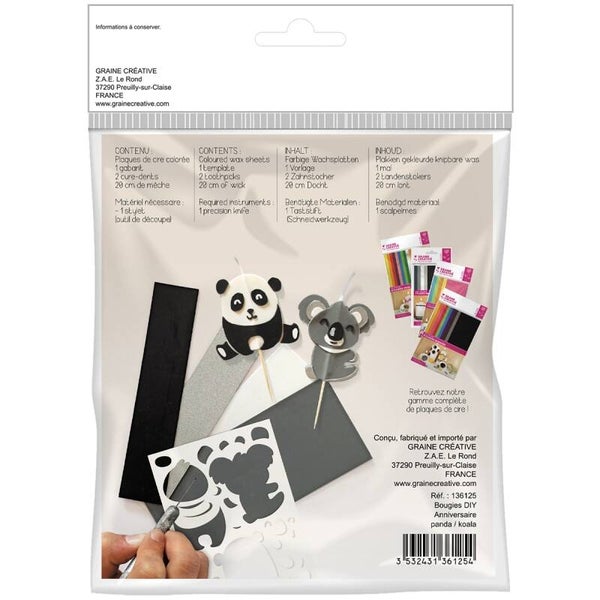 Ontdek deze DIY kaarsenset om 2 schattige verjaardagskaarsen met het thema "Koala en Panda" te maken van wasvellen. Perfect voor het organiseren van een DIY verjaardagsfeestje!