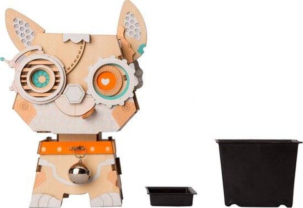 Wat een leuke en educatieve puzzel is deze 3D bloempot in de vorm van een puppy. De doos bevat 58 houten lasergesneden onderdelen en stap-voor-stap Engelse instructies. Leuk om er alleen aan te werken, maar ook samen. Deze puppybloempot heeft een hoogte van 16,6 cm en wordt nog leuker met je favoriete vetplantje erin. Geef de bloempot een speciaal plekje op de studeerkamer, op kantoor of gewoon in de woonkamer.
